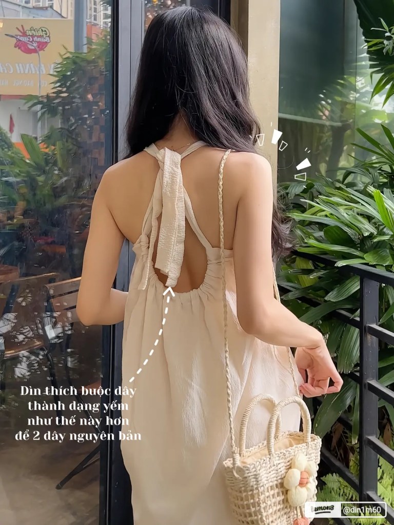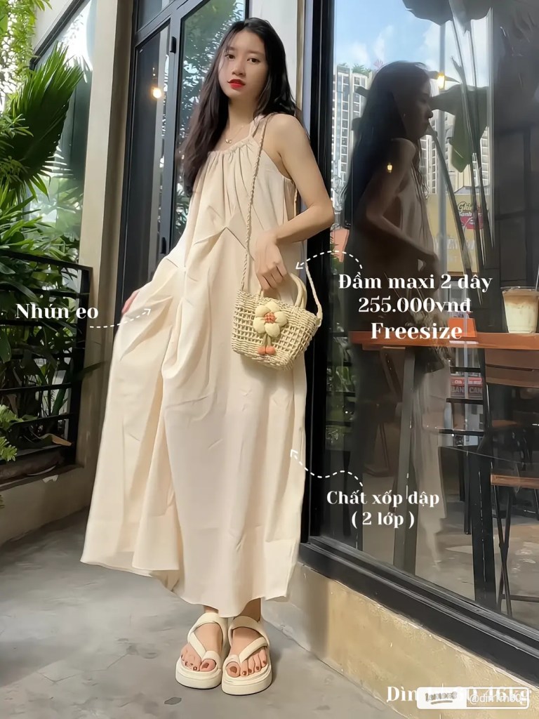 Chất liệu : xốp dập, hai lớp dày dặn lắm nha, hai dây vai là tự cột thắt nha nên có thể thay đổi chiều dài ngắn được, bà nào mét 50 thì nên mang đôi giày cao trên 5 phân nghen