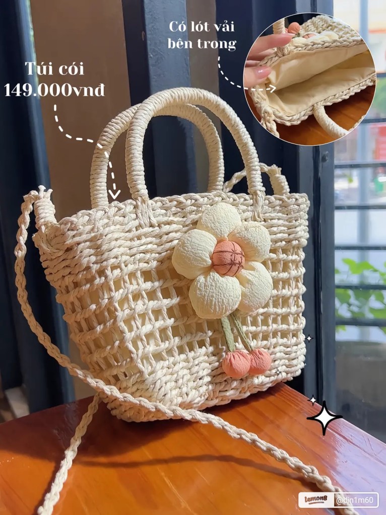 Túi dễ thương, có lót vải bên trong nhưng không có khoá cài nha, nên mua nên mua nhất định có khi đi biển