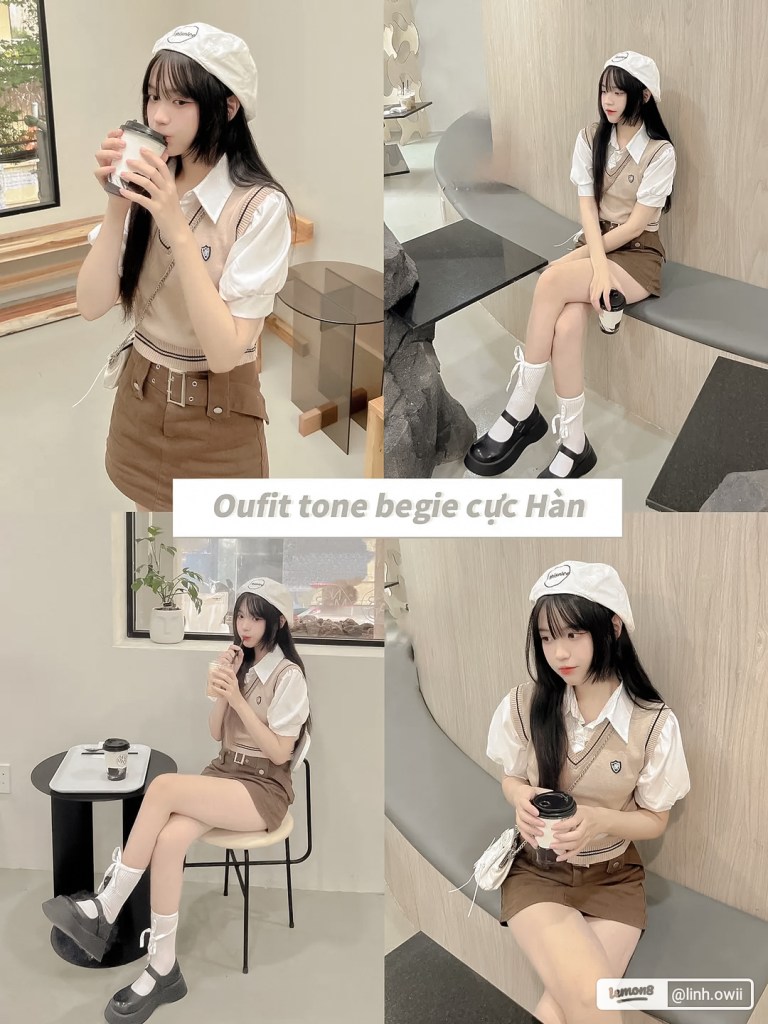 Mix đồ tone beige cực Hàn Quốc